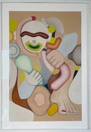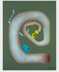 Acrylic, ink, silk, wool, charcoal, oil pastel on linen